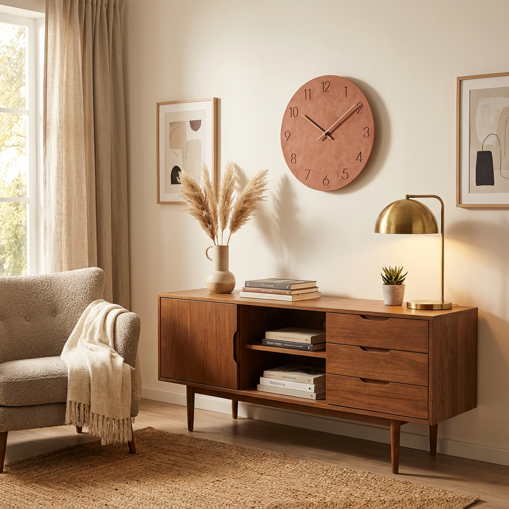 Dette tidløse vægur bringer ro og balance ind i dit hjem med sit rene, nordiske udtryk og velafstemte farver. Det minimalistiske design kombinerer enkel elegance med et moderne præg, der passer smukt ind i både klassiske og nutidige rum. Med lydløst urværk skaber uret en harmonisk atmosfære, hvor funktion og æstetik går hånd i hånd.