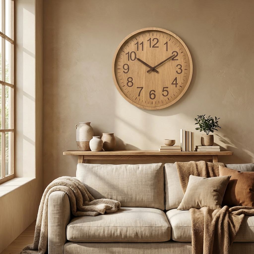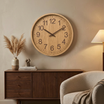 SKANDINAVISK VÆGUR I NATURLIGT TRÆ MED LYDLØS QUARTZ