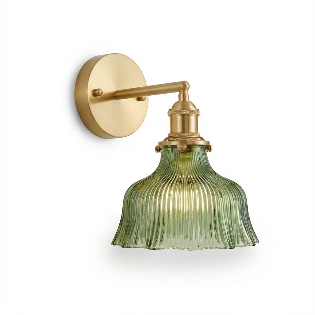 HyggeBrass | Væglampe Vintage – Messing Glas Blomst